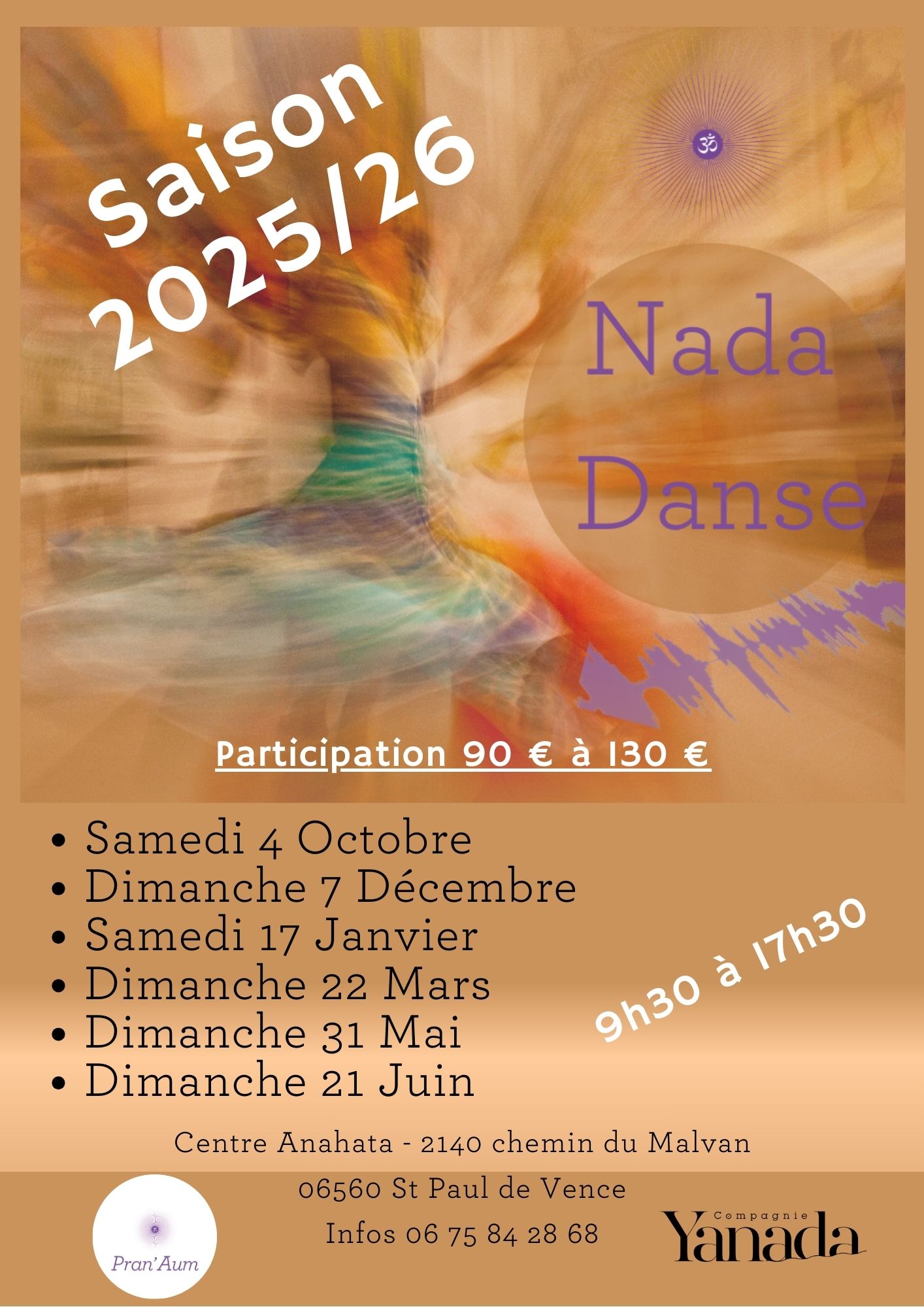 - Une pratique en perpétuelle évolution : Nada-Danse s’appuie aussi sur les dernières recherches des neuro-sciences, de la physique quantique et de la cymatique. De même qu’elle sait évoluer grâce à l’apport précieux de l’expérience des participants, dont elle se nourrit perpétuellement, afin d’être toujours en phase avec la réalité du terrain.